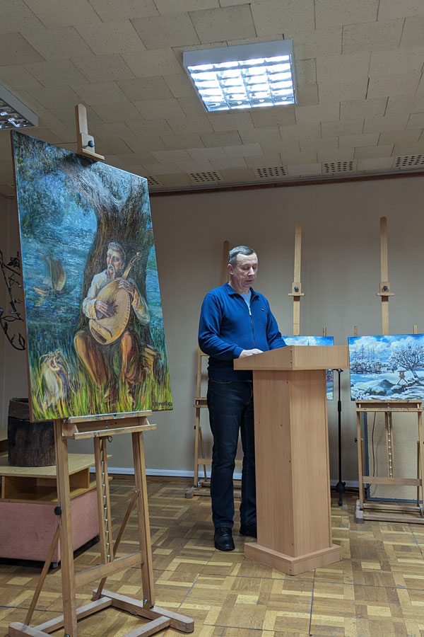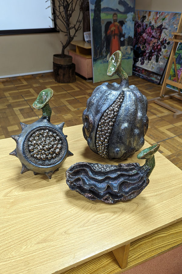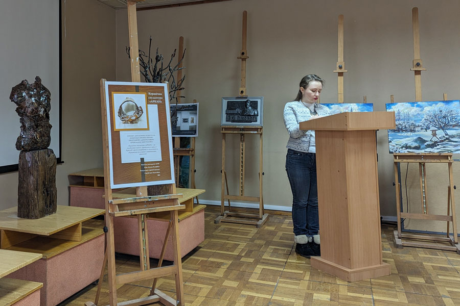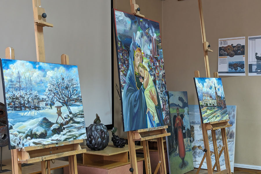 The master's students surprised by the variety of techniques and types of art including picturesque still life, works on historical themes, modern symbolism, landscapes, a hunting scene, ceramic compositions, and metal welding.
