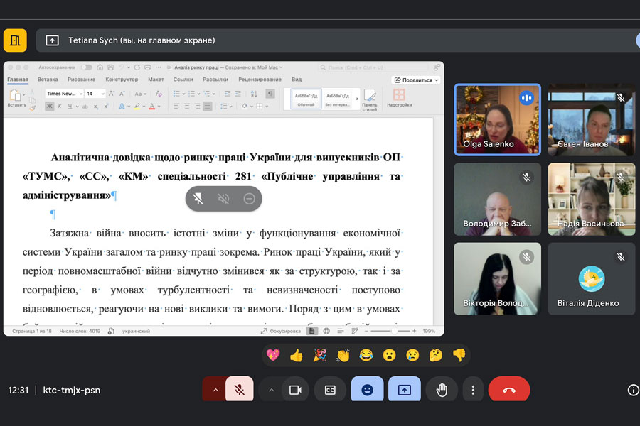 The most important was the discussion of the issue of preparing self-analysis reports for the accreditation of educational programs in the next year of specialty 281 "Public Management and Administration", during the discussion of which the comments of experts on the latest accreditations were analyzed, the guarantors of the programs identified problematic issues that need to be resolved for the final preparation of the reports.