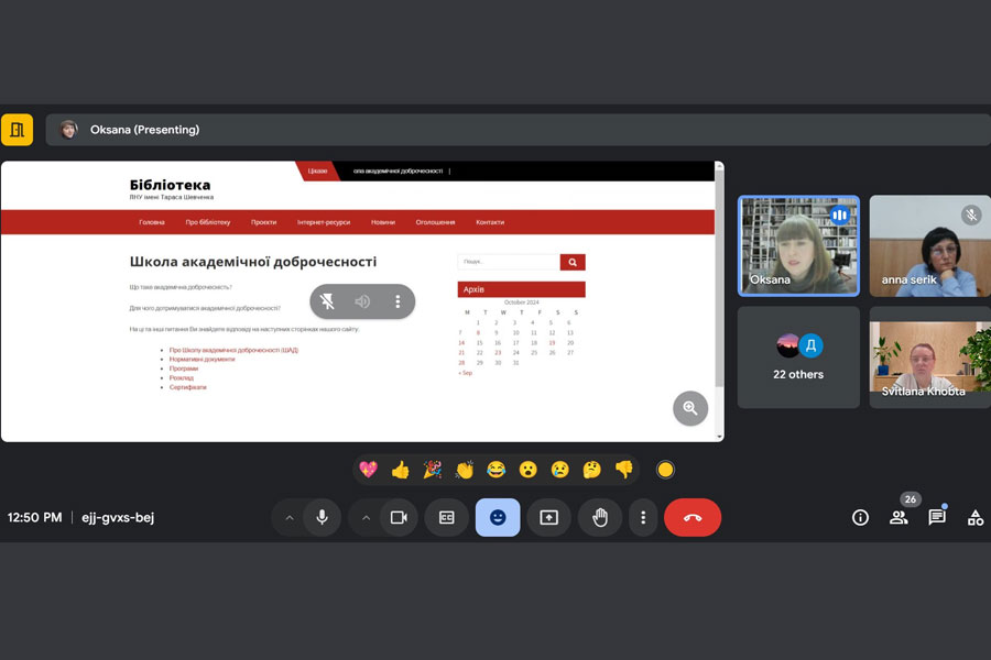 The students got acquainted with the peculiarities of access to library funds, the repository, the procedure for accessing databases, the content of information materials that are currently available on the library's website and that are planned to be posted within the next month.