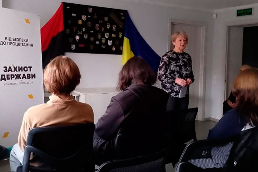 The meeting was opened by Liudmyla PASHCHENKO, a specialist of the Department of Veterans Affairs. Liudmyla Ivanivna made a meaningful excursion into the history of the liberation movement of Ukraine, the formation of Ukrainian statehood, characterized the signs of hybrid war and its negative consequences. In an interactive conversation with students, they found out the lessons of previous wars, talked about how historical experience shapes the modern struggle, and why it is important to preserve the unshakable unity of the people, memory and truth about the heroes who defend Ukraine today.