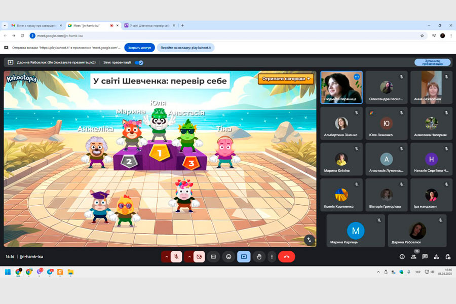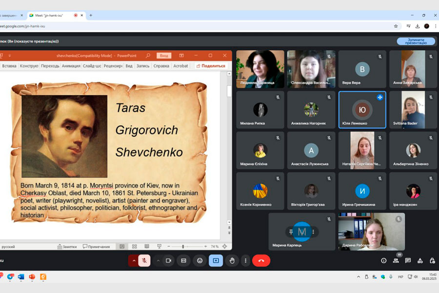 Особливо активною частиною зустрічі стала інтерактивна гра Kahoot, у ході якої здобувачі вищої освіти змогли перевірити свої знання, відповідаючи на цікаві запитання, що стосувалися біографічних фактів Тараса Шевченка, його поетичних і мистецьких творів.