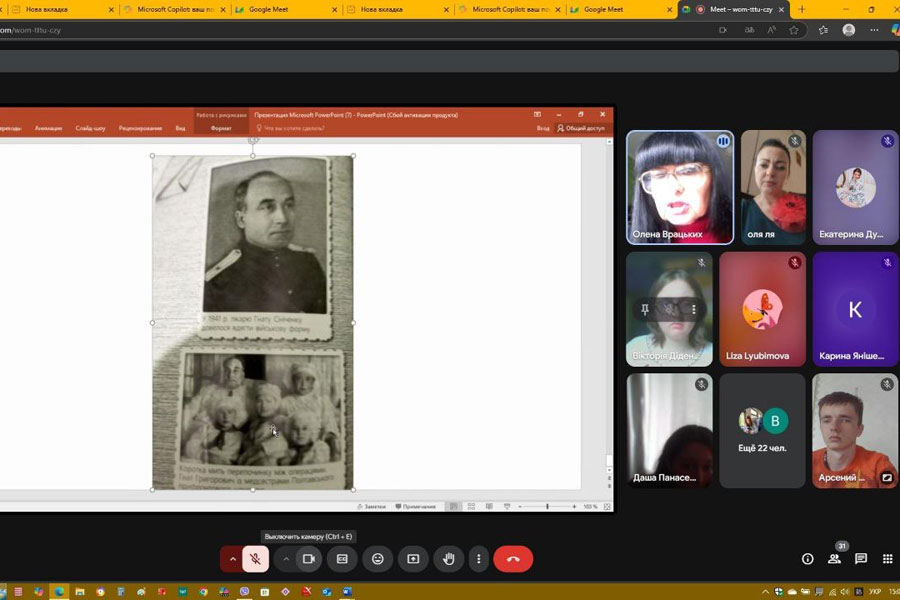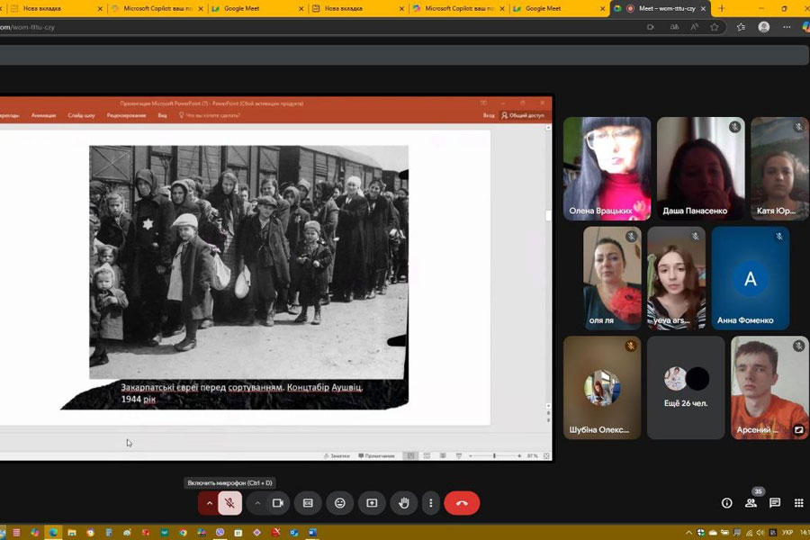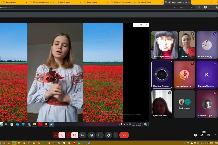 Студенти 1–4 курсів підготували історико-музичну композицію „Горде слово вічної хвали Вам складають вдячні покоління!”. Крізь кадри воєнних років лунали пісні та вірші в їхньому виконанні. У 80-ту річницю закінчення війни в Європі студенти розглядали цю війну з акцентом на ролі людей, які боролися проти нацизму. У прочитаних ними творах про своїх родичів відчувалася велика подяка і шана молоді за внесок дідів і прадідів у перемогу. Учасники зустрічі підкреслили важливу роль України як головного театру воєнних дій радянсько-німецького фронту та українців на різних фронтах другої світової війни, у тилу для забезпечення фронту всім необхідним. Присутні засудили російську версію нацизму – рашизм, який привласнив собі роль головного переможця і перетворив перемогу над нацизмом на пропаганду війни та практичне втілення її на території України.