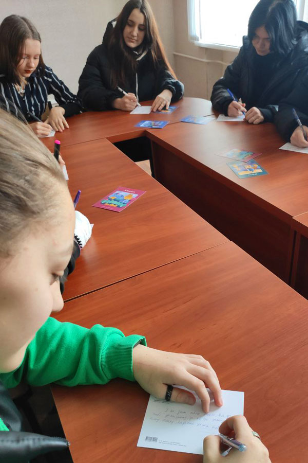 Студенти коледжу від руки підписали та відправили безкоштовні патріотичні листівки зі словами вдячності, написані для тих, хто захищає Україну та кожного українця.