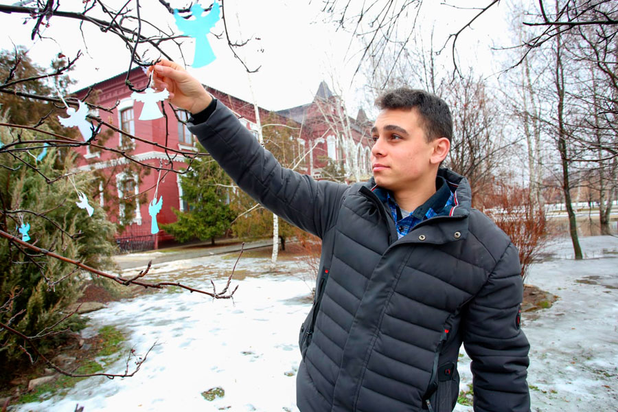 За ініціативою студентської соціальної служби під керівництвом Олени Духової Луганський національний університет імені Тараса Шевченка долучився до тихої акції ,,Ангели пам’ятіˮ з метою вшанування героїв Небесної Сотні. Ініціатори акції – відома українська співачка та громадський діяч Анжеліка Рудницька і ,,Територія Аˮ, які 2014 року започаткували символічну традицію поминати загиблих за Україну білими ангелами. Щороку українці у всьому світі створюють тисячі витинанок із білого паперу, які символізують загиблих за Україну і нашу спільну болючу пам’ять та віру в перемогу світла над темрявою. Паперових ангелів розвішують на деревах, що були свідками розстрілу мирних українців, котрі відстоювали своє право за гідність.