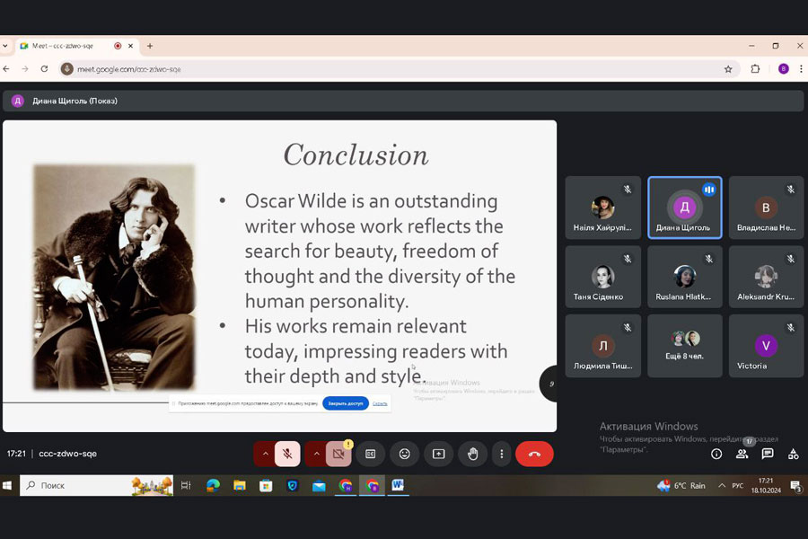 Літературний вечір, присвячений творчості видатного ірландського письменника Оскара Вайлда, став яскравою подією в культурному житті здобувачів кафедри романо-германської філології 18.10.2024 року.