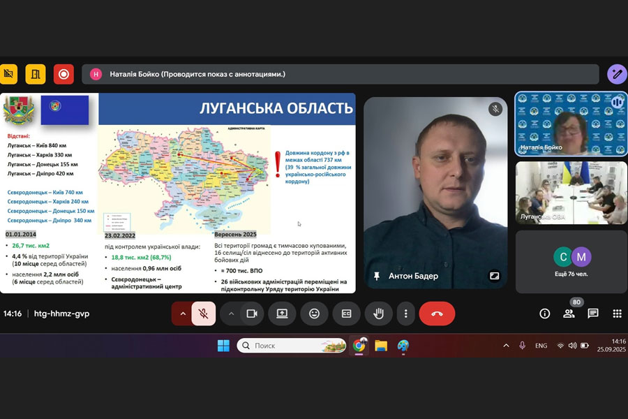 25 вересня 2025 року директор Навчально-наукового інституту соціальних і гуманітарних наук Антон Бадер як член робочої групи взяв участь у засіданні з підготовки проєктів Стратегії розвитку Луганської області та планів заходів її реалізації. Зустріч відбулася у змішаному форматі – офлайн у м. Дніпро та онлайн – з 14:00 до 15:40, що дозволило залучити ширше коло експертів і партнерів регіону.