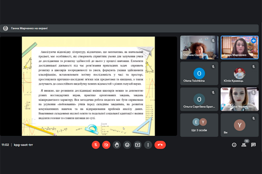 Останньою серед магістрантів спеціальності Середня освіта (Математика) виступила Ганна Марченко за темою «Методичні особливості реалізації прикладної спрямованості викладання математики в закладах загальної середньої освіти», науковий керівник Олена Тоічкіна. Вказані методичні прийоми розв’язування прикладних задач на уроках математики, вплив задач прикладного характеру на формування мотивації і розвиток пізнавального інтересу здобувачів освіти та засоби реалізації прикладної спрямованості.