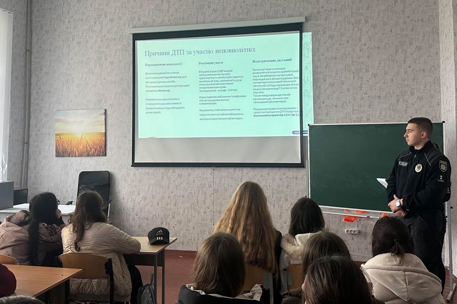 До закладу завітали інспектори сектору «Служба освітньої безпеки» Лубенського РВП ГУНП у Полтавській області, щоб наголосити молоді на важливості правильної та відповідальної поведінки на дорогах.