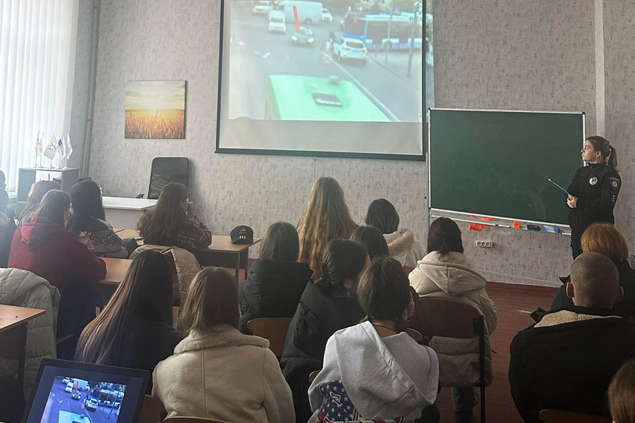 Для студентів підготували змістовну програму, що включала пізнавальну лекцію з презентацією про правила безпечного пересування містом та користування пішохідними переходами. Молодь також узяла участь у тематичній вікторині, під час якої змогла перевірити свої знання Правил дорожнього руху. Окрему увагу фахівці приділили обговоренню небезпек, пов’язаних із керуванням мопедами та скутерами, зокрема за відсутності необхідних засобів захисту. Крім того, зі студентами провели бесіду про правила користування електросамокатами та можливі наслідки необережності під час їх експлуатації.
