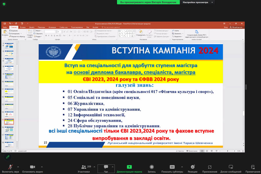 За покликанням до Zoom-конференції приєдналося 240 чоловік. На онлайн-заході від університету були присутні: ректор Олена КАРАМАН, проректор з науково-педагогічної роботи Ярослава ЮРКІВ, директори коледжів, директори навчально-наукових інститутів, декани факультетів, їх заступники, завідувачі кафедр, викладачі.