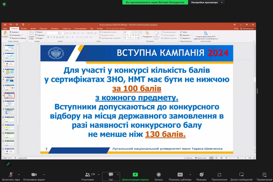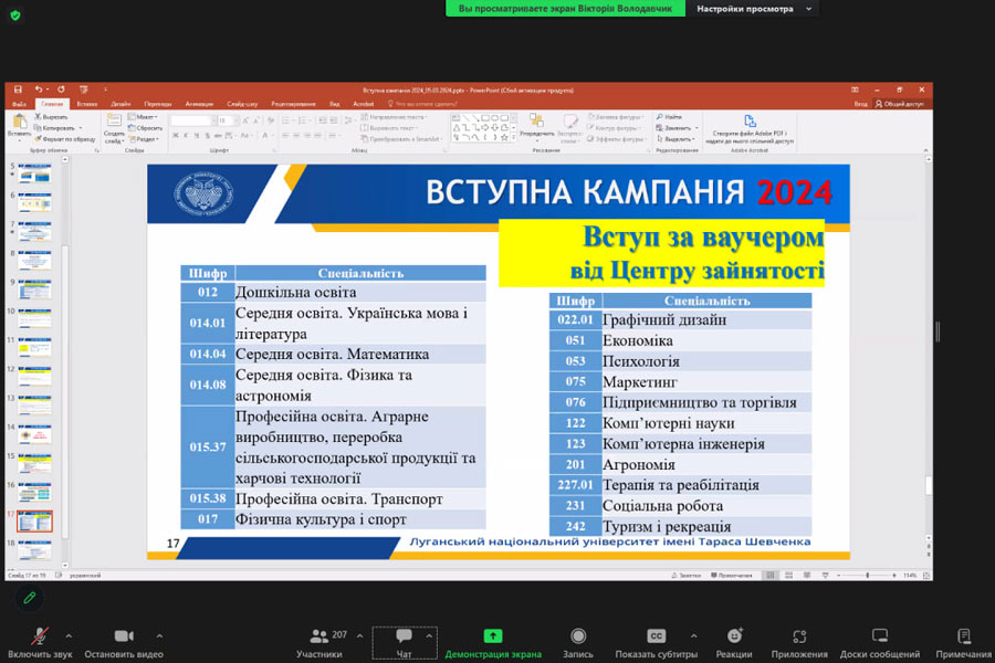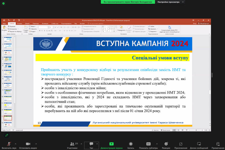 В ході онлайн-зібрання представникам університету присутні задавали свої питання, на які викладацький склад радо і детально відповідав. Питання були різнобічними: про спеціальності, умови вступу, освітні процеси, дозвілля та інше. Зустріч тривала майже три години і пройшла в дуже насиченому та позитивному форматі.
