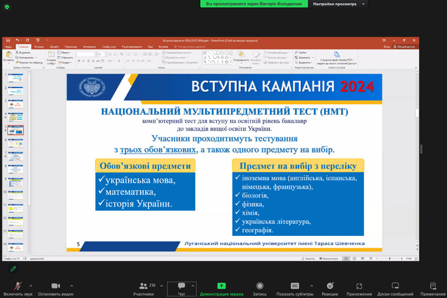 З умовами вступу та правилами прийому до університету у 2024 році гостей ознайомила відповідальний секретар приймальної комісії, кандидат педагогічних наук, доцент Вікторія ВОЛОДАВЧИК.
