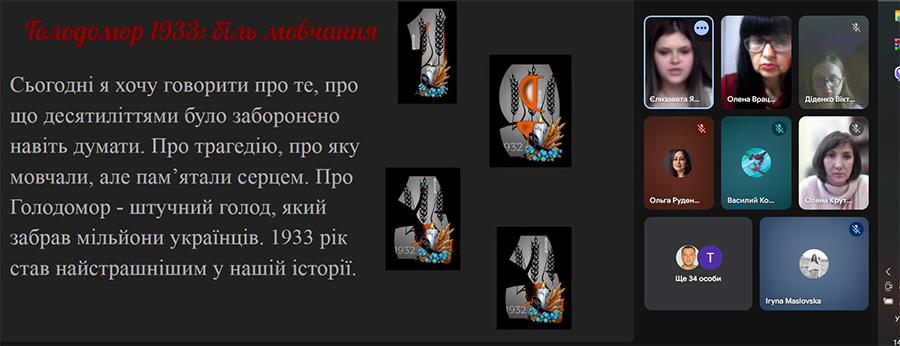 20 листопада викладачі та студенти ВСП «Старобільський фаховий коледж ДЗ «Луганський національний університет імені Тараса Шевченка» зібралися на тематичну зустріч, присвячену 92-й річниці Голодомору 1932–1933 років в Україні та Дню Гідності та Свободи.