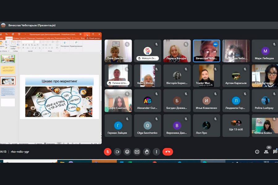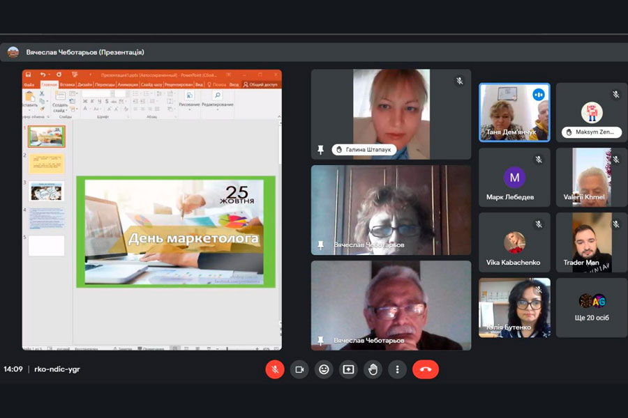 Кафедра організувала захід на платформі Гуглміт із запрошенням не тільки студентів-маркетологів, а й гостей. Відкрив захід і поздоровив здобувачів, які навчаються за освітньою програмою «Маркетинг», завідувач випускової кафедри Вячеслав Чеботарьов. Він підкреслив значимість в сучасних умовах цієї професії, її креативність емоційний інтелект тощо. Також слово для привітань мали директор Інституту економіки та бізнесу Валерій Хмель, всі співробітники директорату та викладачі кафедри.