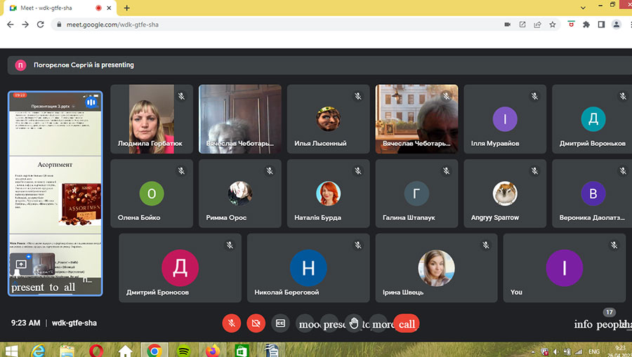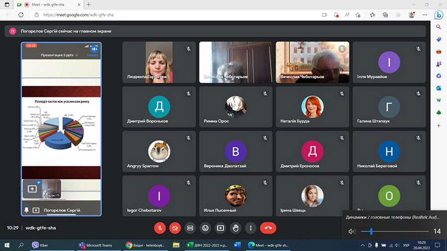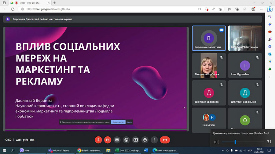 Здобувачі вищої освіти представили свої доповіді. Особливу увагу заслуговують доповіді таких здобувачів-економістів, як: Єроносов Д., Вороньков Д., Лисенний І., Погорелов С. Також дуже цікаві доповіді-презентації підготували здобувачі-маркетологи першого курсу: Даолатзай В. та Муравйов І.