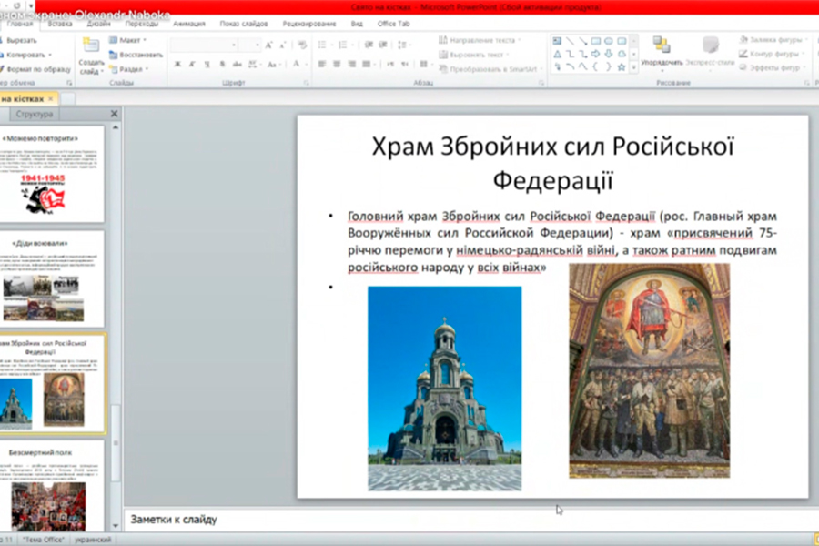 Олександр Набока відзначив, що сьогодні російський путінський режим, «вкрав» відчуття свята та перемоги, сплюндрувавши дух свята та наповнивши його новим – «неомперським» або, навіть, «язичницьким» змістом. Учасниками зустрічі було розглянуто феномен «победобісся» – російської ідеологічної спецоперації, яка характеризується гіпертрофованим культом радянської перемоги, розпалюванням штучної ненависті до навколишніх народів, шляхом нагородження нічим невиправданими кліше «нацистів». На думку Олександра Набоки, перші прояви цієї інформаційної спецоперації він спостерігав ще у 2005 році, коли російська влада взяла курс на відновлення російської неомперії.