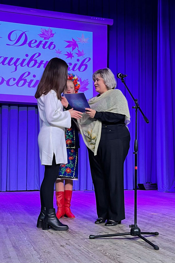 До привітань доєдналась керуюча справами виконавчого комітету Миргородської міської ради Антоніни НІКІТЧЕНКО, яка побажала усім присутнім сімейного затишку, подякувала за виховання майбутнього покоління Миргородської громади та вручила Грамоти Миргородської міської ради за значний внесок у розвиток освітянської галузі громади та з нагоди професійного свята представникам університету та коледжів які працюють на Миргородській локації. Грамотами були відзначені - БОЙКО ОЛЕНА ВОЛОДИМИРІВНА - заступник директора з навчальної роботи Навчально-наукового інституту бізнесу і менеджменту; ПАВЛОВА НАТАЛІЯ ІВАНІВНА - заступник директора з соціально гуманітарної роботи Навчально-наукового інституту природничих і аграрних наук; ШВЕЦЬ ІРИНА МИХАЙЛІВНА - заступник директора з соціально гуманітарної роботи Навчально-наукового інституту математики та інформаційних технологій; СТАРАНКО ТЕТЯНА ВОЛОДИМИРІВНА - заступник директора з навчальної роботи ВСП «Брянківський фаховий коледж ДЗ «Луганський національний університет імені Тараса Шевченка»; МЕЩЕРЯКОВ ІГОР ЮРІЙОВИЧ - заступник директора з виховної роботи ВСП «Рубіжанський фаховий коледж Державного закладу «Луганський національний університет імені Тараса Шевченка».