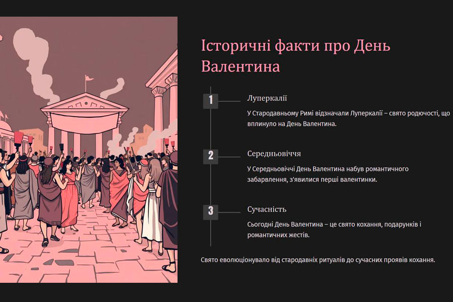 Здобувачі вищої освіти спеціальностей Маркетинг та Економіка Навчально-наукового інституту бізнесу і менеджменту не оминули увагою цей день та зустрілися на едвайзерській годині. Ініціювала проведення заходу завідувач кафедри економіки і маркетингу Людмила ГОРБАТЮК. А втілили її ідею самі здобувачі вищої освіти, які з відповідальністю віднеслись до проведення свята. На заході студенти зʼясували історію свята, легенду про святого Валентина, визначили символіку свята, найпопулярніші подарунки, маркетингові ідеї відомих компаній. Окрім цього, зʼясували особливості святкування цього свята в різних країнах.