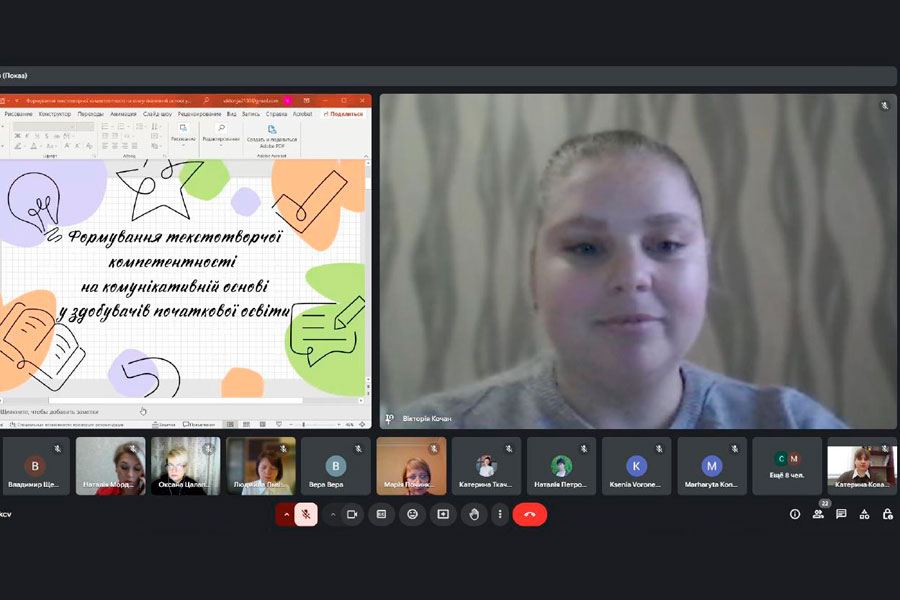 Для розгляду та презентацій було представлено 58 науково-методичних досліджень на актуальні проблеми сучасної вітчизняної початкової освіти, а також деякі тематики робіт стосувались питання здобуття освіти українських дітей за кордоном через вимушене переселення із-за військових дій на території України. Розмаїття педагогічних підходів, технологій викладання освітніх галузей, методів і прийомів щодо активізації, формування позитивної мотивації молодших школярів до навчання в НУШ були на високому науковому рівні представлені в роботах: О. Ганускової «Формування мовно-комунікативних умінь і навичок учнів початкової школи в іншомовному середовищі (на основі шкільної системи федеральної землі Гессен, Німеччина)», наук. кер. – завкафедри початкової освіти, доцент Н. Мордовцева, Б. Мороз «Художньо-естетичний розвиток здобувачів освіти початкової ланки у процесі роботи на майстер-класах», наук. кер. – доцент О. Цалапова; О. Сагімбаєвої «Використання додатків Google для організації високотехнологічного навчання на уроках мовно-літературного циклу в початковій школі», наук. кер. – професор В. Кизилова; В. Хімінця «Впровадження технології розвитку критичного мислення в початкових класах в умовах НУШ», наук. кер. – професор М. Починкова; М. Кононенко «Формування вмінь спілкуватися рідною та англійською мовами в молодших школярів засобом позакласної роботи», наук. кер. – доцент Л. Мельник; О. Соннікової «Ігрова діяльність як інструмент в контексті подолання освітніх втрат», наук. кер. – доцент Т. Маркотенко; Є. Скорохода «Оптимізація процесу виховання мовленнєвого етикету здобувачів освіти початкової та основної школи», наук. кер. – доцент В. Пушко.