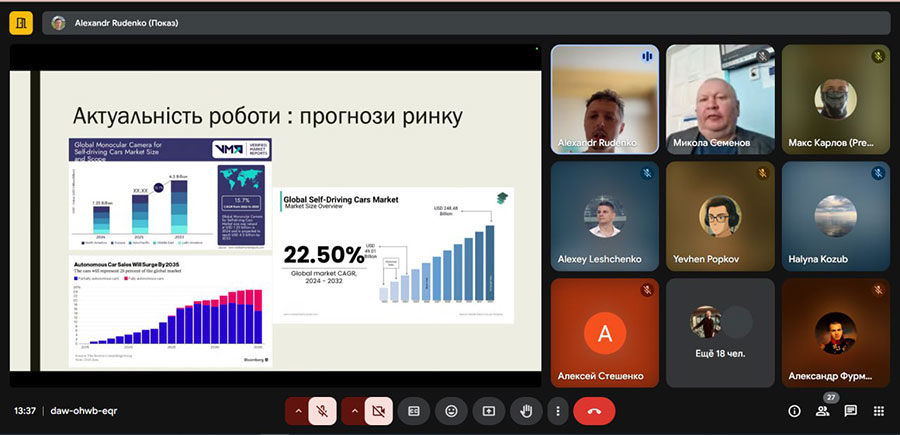 Руденко Олександр, здобувач освіти 1 курсу другого (магістерського) рівня вищої освіти, спеціальність Інженерія програмного забезпечення, тема: «ДОСЛІДЖЕННЯ ТЕХНОЛОГІЙ РОЗРОБКИ СИСТЕМИ КОМП’ЮТЕРНОГО ЗОРУ ДЛЯ ЗАДАЧ НАВІГАЦІЇ АВТОНОМНОГО ТРАНСПОРТНОГО ЗАСОБУ», науковий керівник Козуб Г.О.;