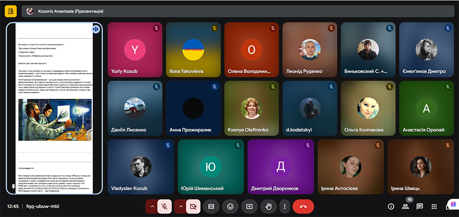 Козоріз Анастасія, ,здобувачка освіти 3 курсу першого (бакалаврського) рівня вищої освіти, спеціальності СО (Математика), тема: «Рентгенівські випромінювання», науковий керівник Швець І.М.;