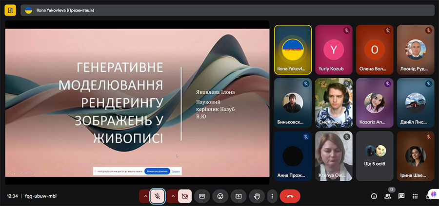 Яковлева Ілона, здобувачка освіти 2 курсу першого (бакалаврського) рівня вищої освіти, спеціальності Комп’ютерні науки, тема: «Генеративне моделювання рендерингу зображень у живописі», науковий керівник Козуб В.Ю.;