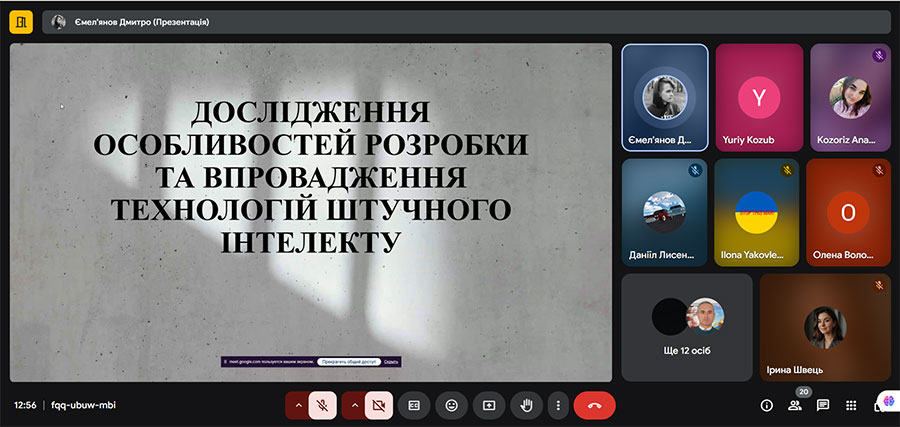 Ємел'янов Дмитро, здобувач освіти 3 курсу першого (бакалаврського) рівня вищої освіти, спеціальності Комп’ютерні науки, тема: «Дослідження особливостей розробки та впровадження технологій штучного інтелекту» , науковий керівник, Смагіна О.О.;