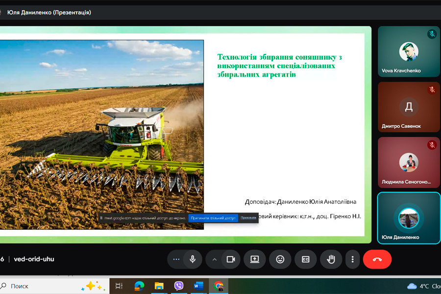 Тема: «Технологічні особливості збирання соняшнику з використанням спеціалізованих збиральних агрегатів».