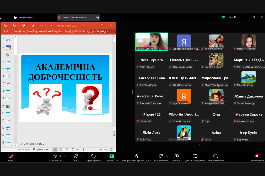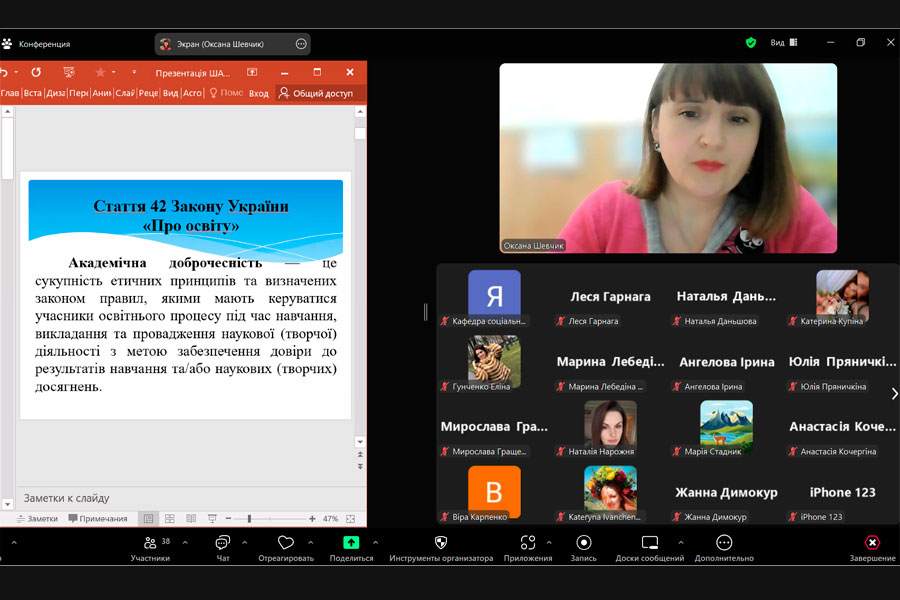 Зустріч завершилася обговоренням практичних кроків для дотримання принципів академічної доброчесності та важливості цього підходу для професійного зростання майбутніх фахівців соціальної роботи.