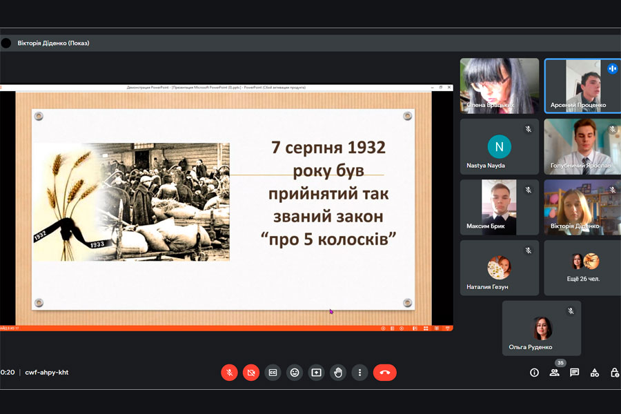 Зустріч проходила як Суд над Голодомором-геноцидом українського народу. Студенти виступали у ролях судді, прокурора, дослідників цієї страшної трагедії. Вони проаналізували історичні документи, події, факти, спогади, фото та відеоматеріали. Викладачі коледжу поділилися спогадами про своїх рідних, які пройшли крізь це пекло. Під час зустрічі нас, людей різних поколінь, об’єднало одне – пам’ять. Та пам’ять, яку комуністичний тоталітарний режим, попередник путінського рашизму, намагався знищіти і заборонити, заблокувати страхом і зачинити навіки в душах людей. Тому що ці люди – українці. Але пам’ять жила в сльозах наших бабусь, у скорботному погляді дідусів і проривалась в їхніх спогадах.