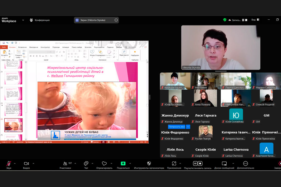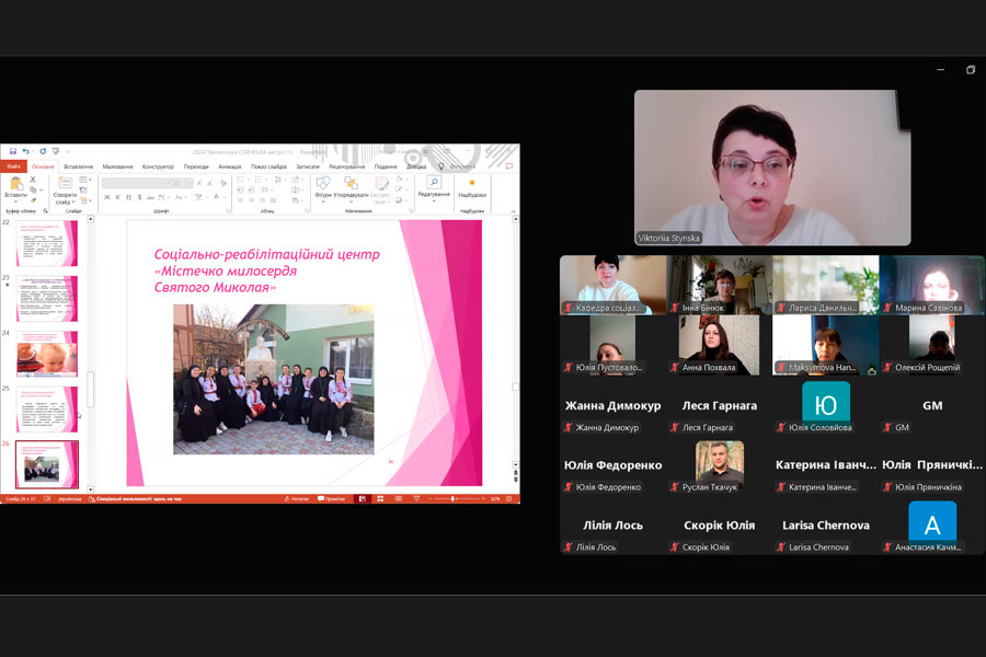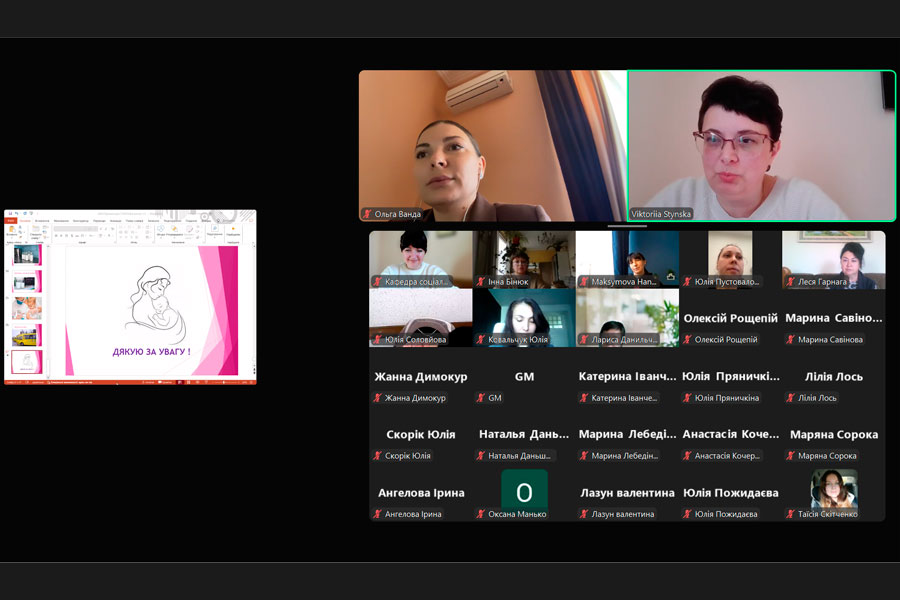 Лекцію на тему «Актуальні проблеми соціально-педагогічної підтримки материнства й дитинства в Україні» було організовано для здобувачів другого (магістерського) рівня вищої освіти спеціальності «Соціальна робота» за освітньою програмою «Соціальна робота. Соціальна педагогіка. Практична психологія» нашого університету.