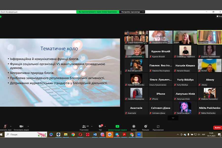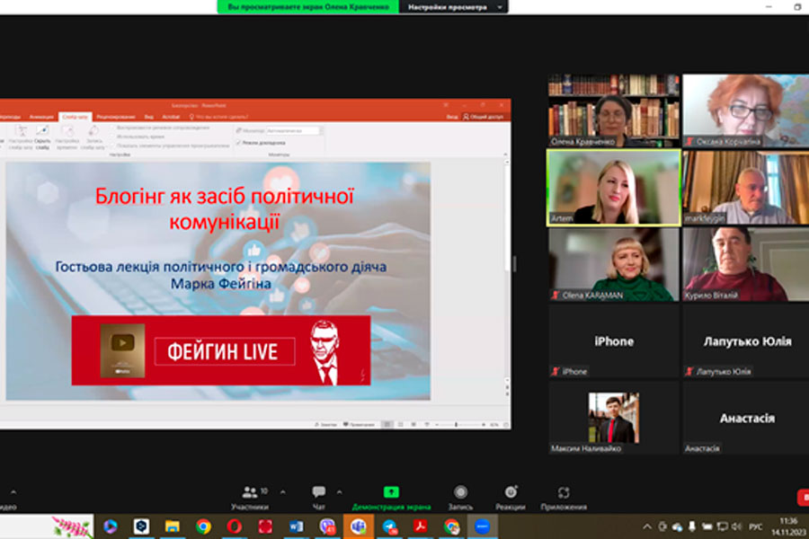 14 листопада 2023 року на платформі «Zoom» відбулася гостьова лекція для здобувачів вищої освіти та викладачів Луганського національного університету імені Тараса Шевченка на тему: «Блогінг як засіб політичної комунікації».