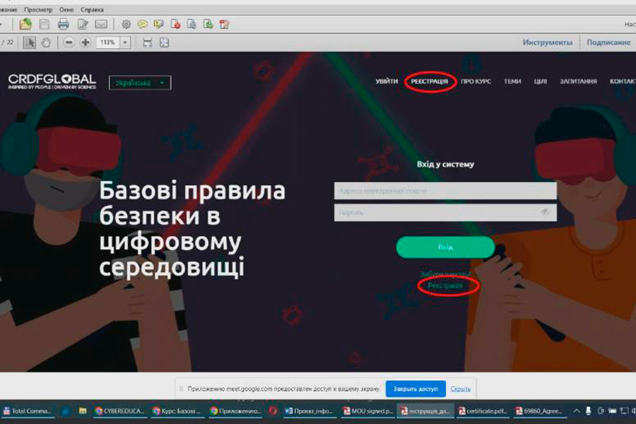 Так, здобувачі вищої освіти дізналися про унікальну можливість пройти безкоштовний електронний навчальний курс з кібергігієни «Базові правила безпеки в цифровому середовищі» (реєстрація на курс https://cybereducation.org/mc/index.php/usr/login/registration) в межах підписаної грантової угоди G-202301-69860 «Promotion of the Cyber Hygiene E-Learning Course» між Луганським національним університетом імені Тараса Шевченко та Civilian Research and Development Foundation of the USA (CRDF Global – Фонд цивільних досліджень та розвитку США).