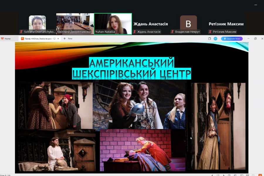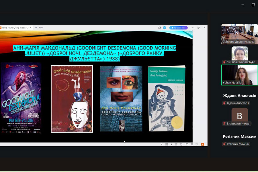 У лекції взяли участь студенти 1 курсу спеціальності «Філологія» груп БАМ-25, БЗАМ-25 та БДАМ-25. Захід став поєднанням академічного аналізу та візуальної театральної практики: професорка представила відео-уривки сучасних театральних інтерпретацій трагедій Вільяма Шекспіра «Ромео і Джульєтта» (англійською мовою) та Й.-В. Ґете «Фауст» (німецькою мовою), а також приклади постановок із театрів Німеччини та Великої Британії.