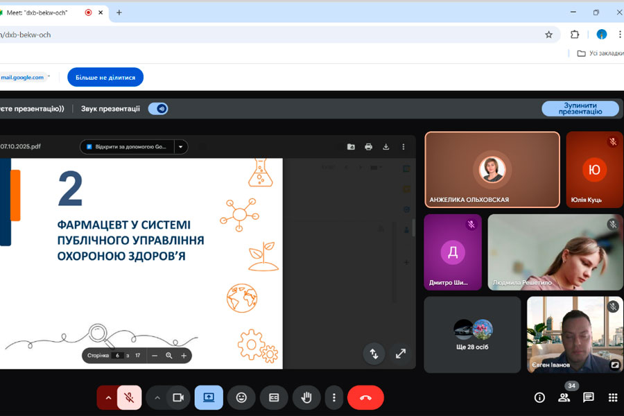 Доповідачкою заходу стала Ольховська Анжела Борисівна, докторка фармацевтичних наук, професорка кафедри загальної фармації Національного технічного університету «Харківський політехнічний інститут» (м. Харків).