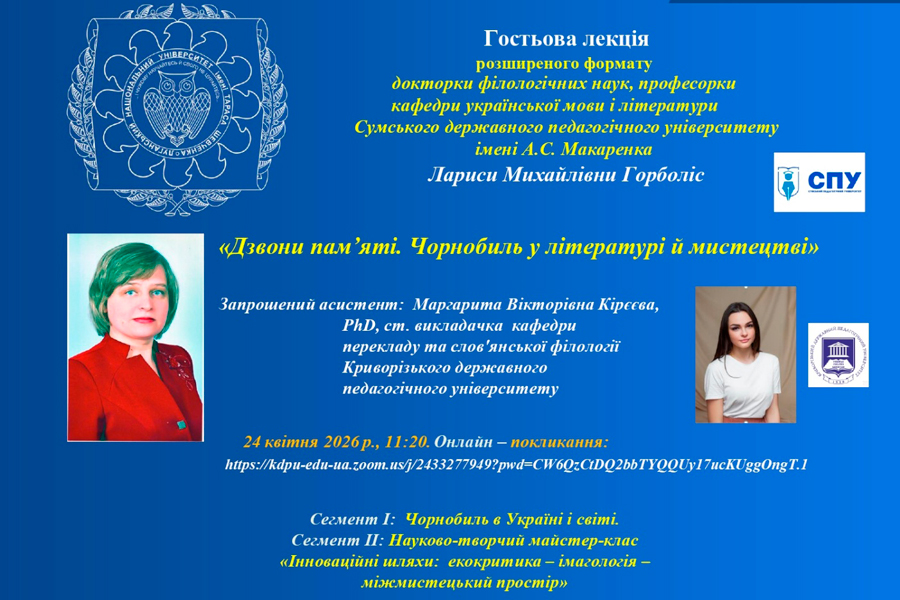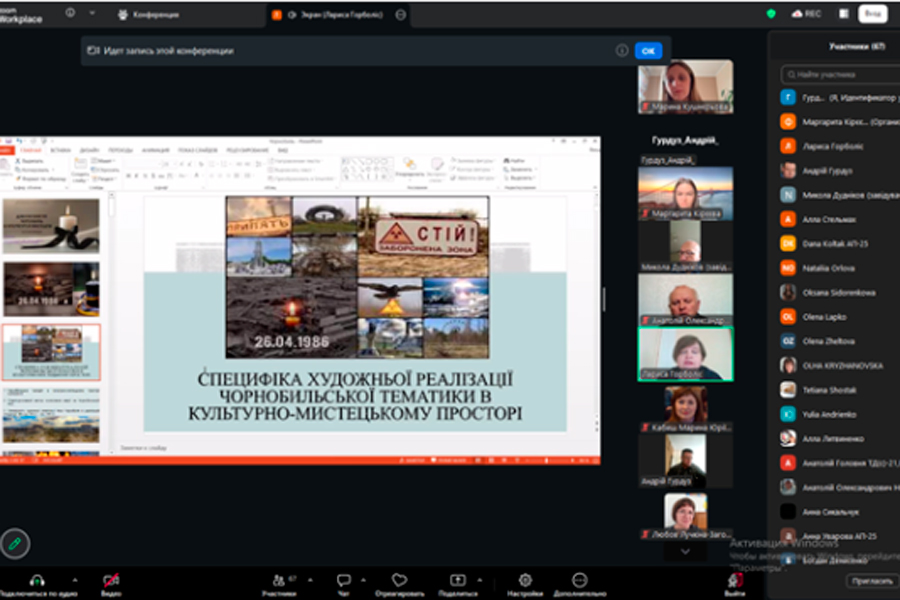 Набувши світового резонансу в усіх сферах культури, чорнобильська трагедія породила окремий літературний жанр, і його в динамічній рецепції українських та зарубіжних письменників чотирьох десятиліть презентувала шановна запрошена лекторка, залучивши до розповіді також живопис, скульптуру кіно.