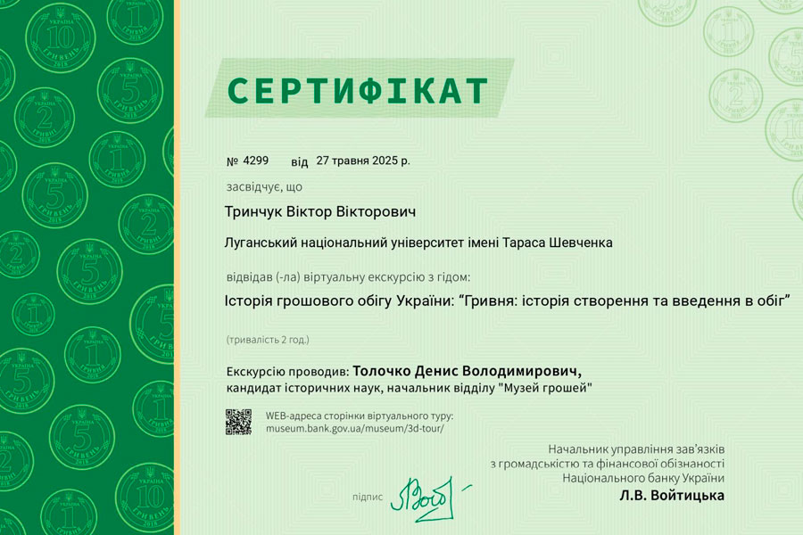 Віртуальний тур було організовано відділом «Музей грошей» Національного банку України. Захід провів кандидат історичних наук Денис Толочко – справжній знавець історії національної валюти.