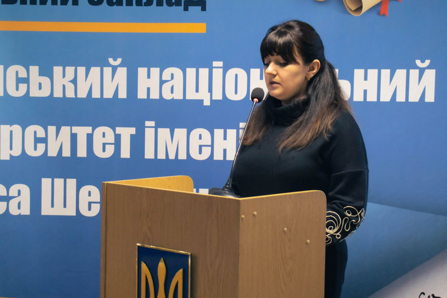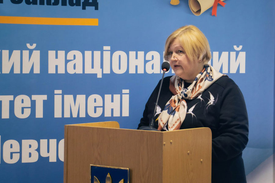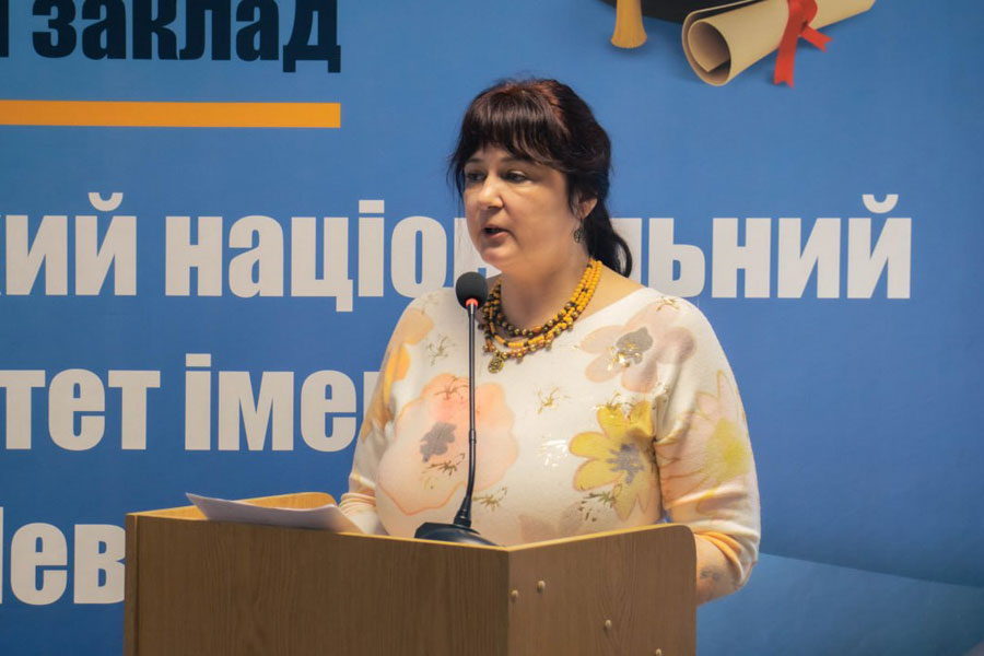 До присутніх з вітальним словом звернулась ректорка Луганського національного університету імені Тараса Шевченка Олена Леонідівна Караман.