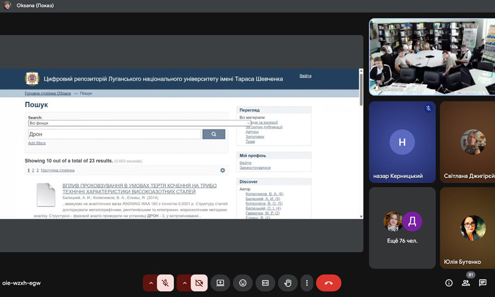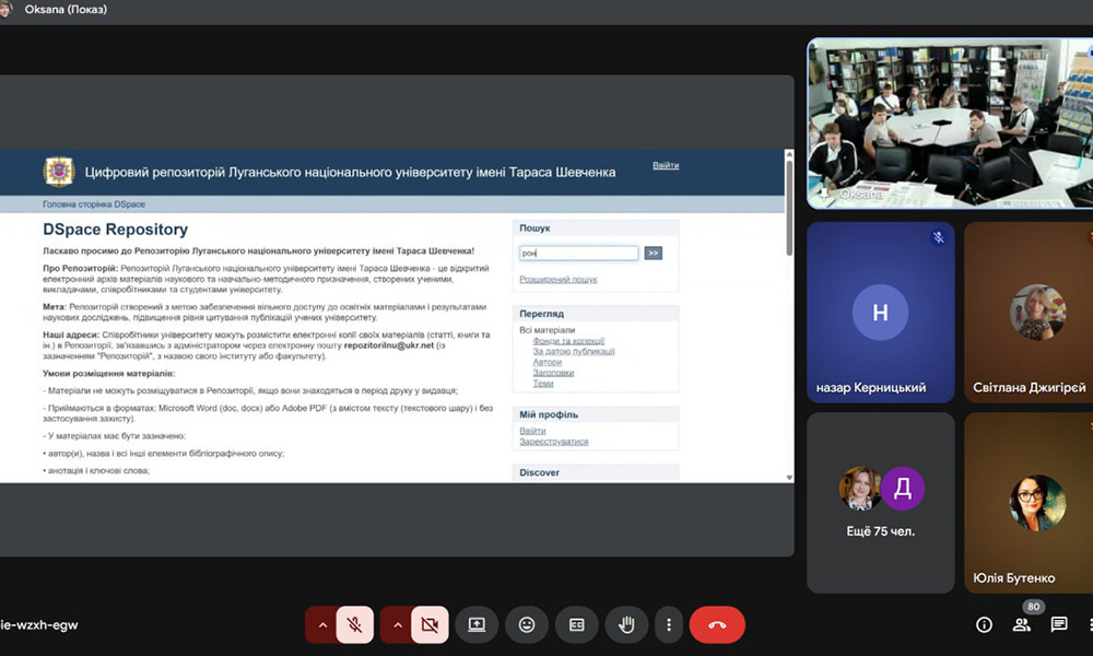 Під час зустрічі було висвітлено питання доступу до електронних каталогів, баз даних наукової літератури, електронної бібліотеки університету та інших онлайн-сервісів. Особливу увагу було приділено питанням пошуку необхідної інформації для написання наукових робіт, курсових та дипломних проєктів.