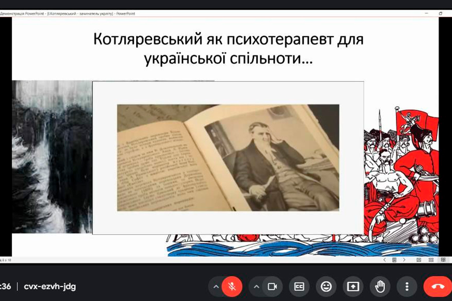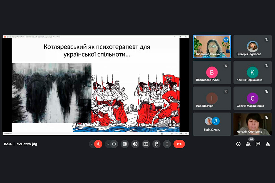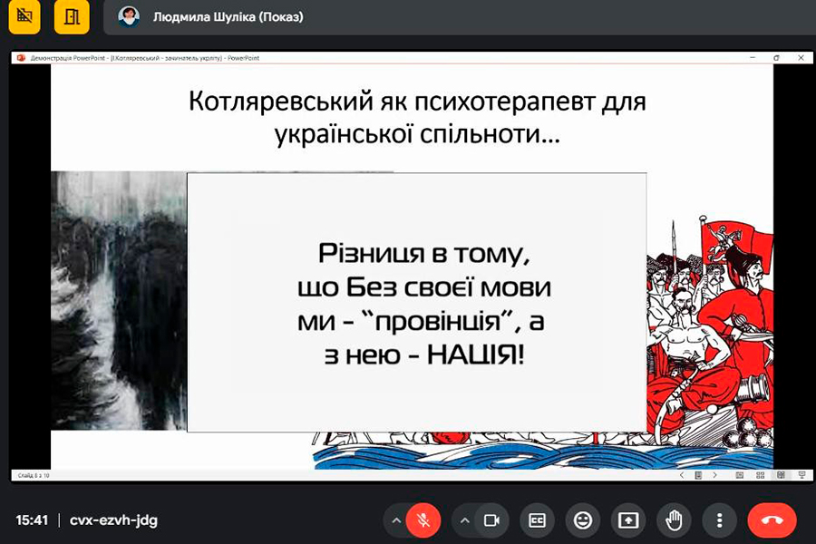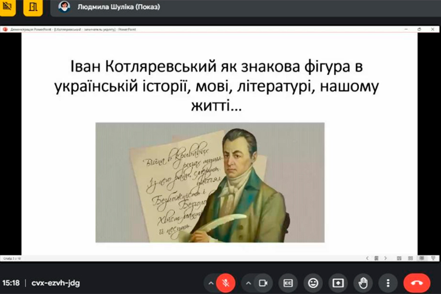 На зустрічі викладач української літератури Шуліка Л.В. спробувала розвінчати стереотипи, пов’язані з постаттю письменника. Разом з тим, головною темою обговорення стала роль Котляревського у становленні української нації в дуже складний для українців історичний період кінця 18- початку 19 століття, а також у наш час. Іван Котляревський – не тільки зачинатель української літератури та літературної мови, він – рятівник нації, яка опинилась в безвиході, депресії, приниженої та, як здавалось, знищеної. Його поема «Енеїда» проклала шлях в майбутнє українцям. Тому постать Івана Петровича в нашій історії не менш важлива, ніж Тараса Шевченка, про якого говоримо значно частіше.