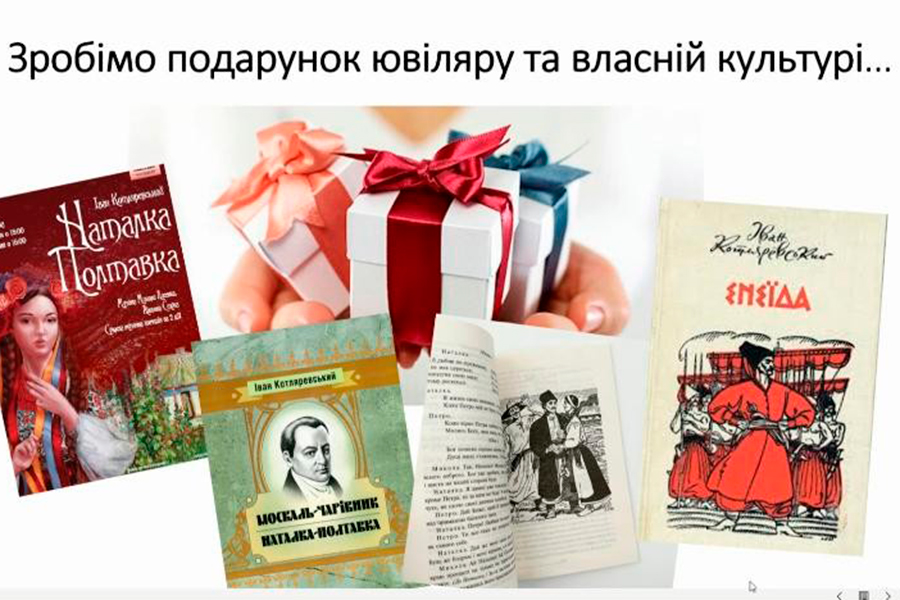 Учасники заходу пригадали твори автора, дізнались про цікаві факти його життя та отримали пропозицію зробити ювіляру подарунок – повернутись до його творів, прочитати чи перечитати їх, подивитись вистави за п’єсами, мультфільм «Енеїда». Сподіваємось, що ці подарунки таки будуть, оскільки, як ми бачимо, культура часто захищає наш народ навіть там, де збройний опір стає неможливим.