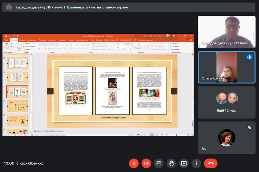 Цікаві і слушні питання задавали: кандидатка педагогічних наук, доцентка, директорка навчально-наукового інституту культури і мистецтв Ірина Продан, кандидат педагогічних наук, професор кафедри дизайну Володимир Кардашов, доктор педагогічних наук, професор Вячеслав Борисов.