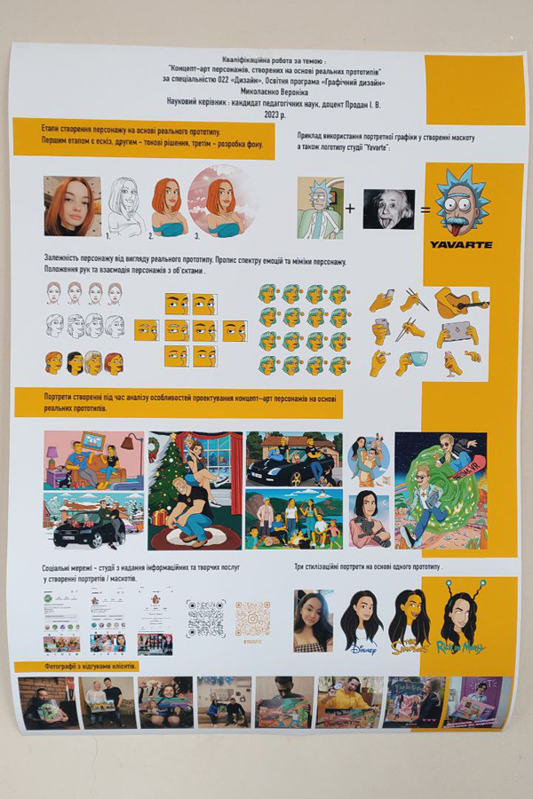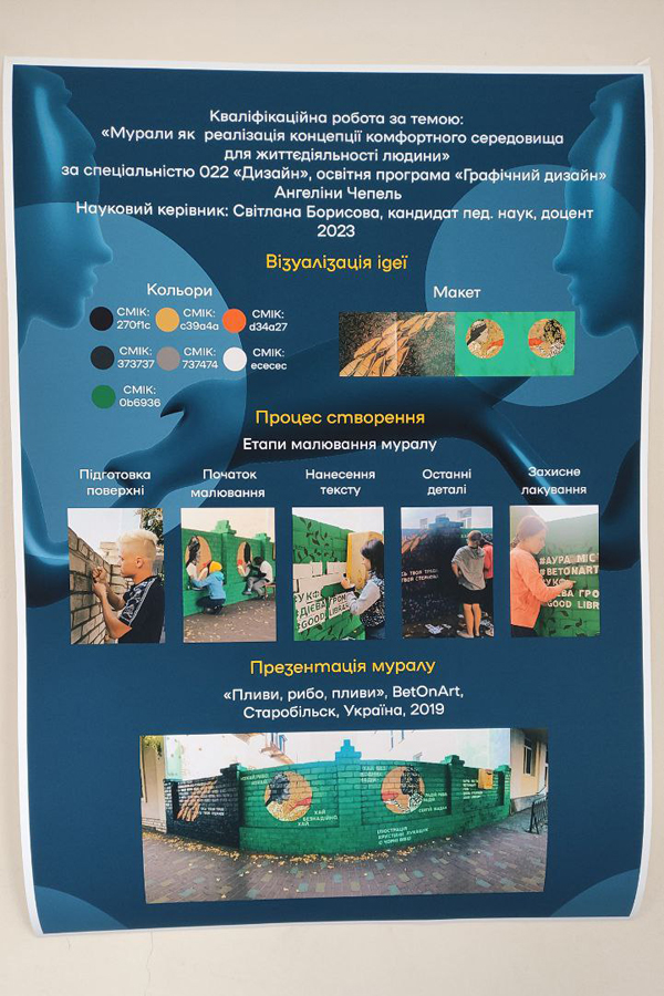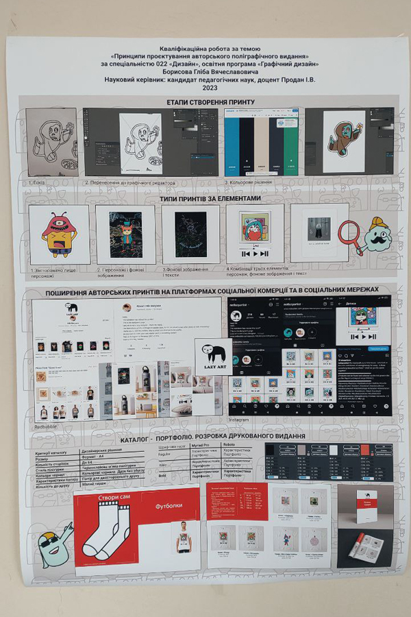 Здобувачі вищої освіти гідно представили результати своїх наукових пошуків, ґрунтовно осмислили важливі для сучасного графічного дизайну проблеми. Зокрема, Гліб Борисов висвітлив принципи проєктування авторського поліграфічного видання, Миколаєнко Вероніка дослідила проблему концепт-арту персонажів, створених на основі реальних прототипів, Марко Мосієнко презентував розробку персонального сайт портфоліо дизайнера з використанням сучасних no-code інструментів.