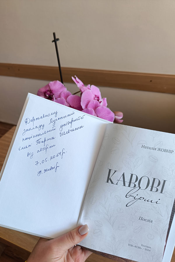 7 травня у Полтавській обласній бібліотеці для юнацтва ім. Олеся Гончара відбулася презентація збірки поезії Наталії Жовнір «Кавові вірші» в межах проєкту «Краєзнавчий ліцей».
