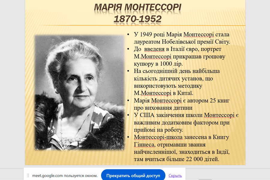 З цієї нагоди кафедра продовжує реалізацію низки тематичних заходів, спрямованих на популяризацію прогресивних ідей дошкільної освіти, розвиток професійної майстерності педагогів та ознайомлення з педагогічною спадщиною Монтессорі.