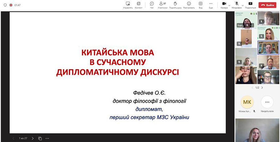 25.06 Перший секретар відділу Східної Азії Четвертого територіального департаменту МЗС України Олександр Федічев провів лекцію на тему “Китайська мова сучасному дипломатичному дискурсі”.