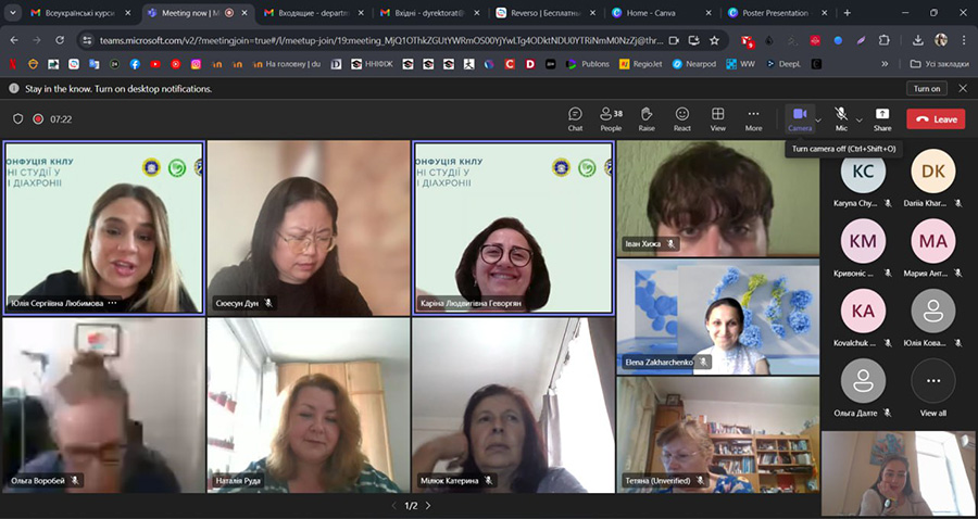 З 24.06.2023 по 28.06.23 викладачі кафедри східної філології і перекладу Бєлік М.О., Корінська О.О., Малахова Ю.В. та Перепадя Д.О. взяли участь у курсах підвищення кваліфікації для викладачів китайської мови "Синологічні студії у синхронії і діахронії", що проводилися при Інституті Конфуція Київського національного лінгвістичного університету.