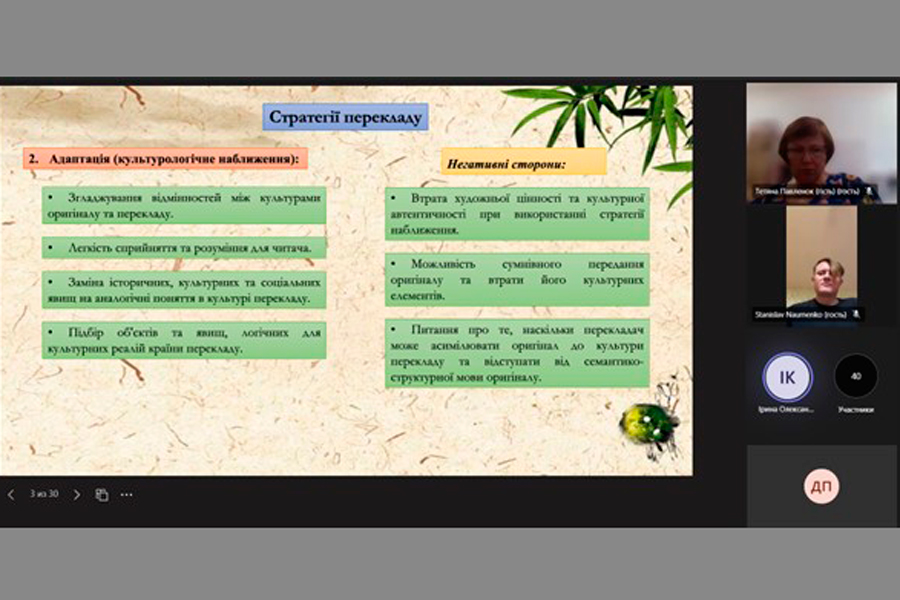 20 червня відвідали лекцію кандидата філологічних наук, доцента Костанди І. О. на тему "Особливості перекладу китайської прози: синхронічний і діахронічний аспекти".