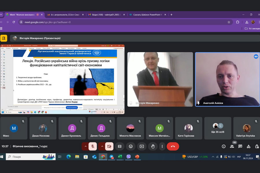 6 листопада директор навчально-наукового інституту соціальних і гуманітарних наук Антон Бадер виступив із лекцією на тему "Російсько-українська війна крізь призму логіки функціонування капіталістичної світ-економіки". Лекція проходила офлайн і зібрала значну кількість студентів університету.