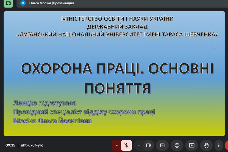 2 жовтня науково-педагогічні працівники та здобувачі освіти Навчально-наукового інституту природничих і аграрних наук прослухали лекцію з охорони праці «Охорона праці: основні поняття», яку провела провідний спеціаліст з охорони праці Луганського національного університету імені Тараса Шевченка» Ольга МОСІНА.